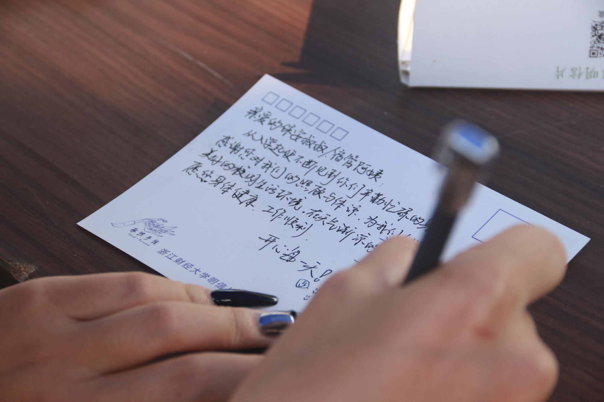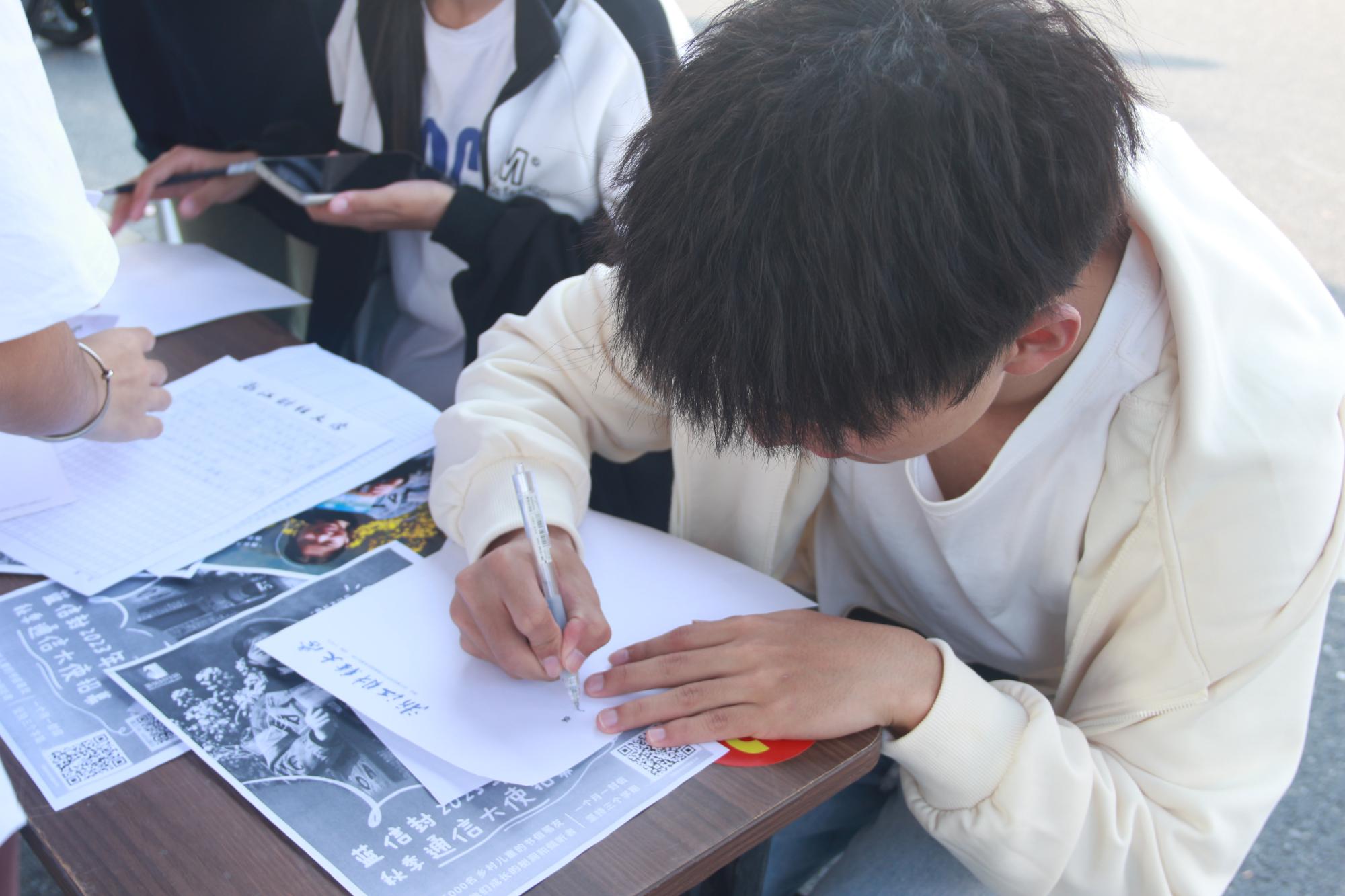 用感情浸润笔尖,细细斟酌妙词,纸短情长,道不尽万千思绪。同学们纷纷执笔,深情吐露自己的心声,一笔一划书写对辛勤工作的宿管阿姨、安保人员和值班老师的感恩和真挚祝福。