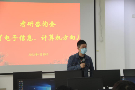 于4月19日下午举办了电子信息、计算机科学与技术和管理与科学工程2个考研方向的现场辅导咨询会。