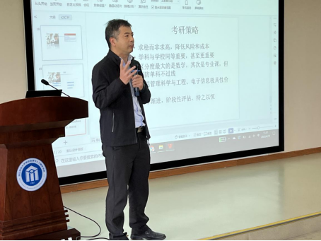 会上,隆清琦详细介绍了目前的全国考研形势、学院考研情况、考研方向选择以及考研策略。希望同学们能够做好考研复习计划,及时关注目标院校的考研分数和招生计划,注重劳逸结合,加强身体锻炼,对自己定位清晰准确。陈伟锋、宋海裕、陈明晶和田聪分别围绕目标院校及专业选择、制定复习计划、查找资料、调整心态等方面谈了自己的亲身体验和感受。咨询会干货满满,赢得了同学们的阵阵掌声,让同学们更加明确考研的方向,进一步增强了考研的信心和决心。