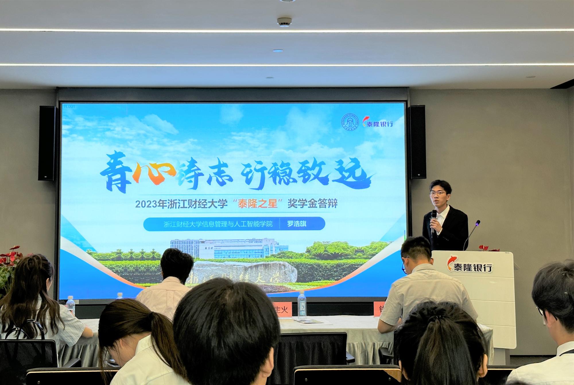 “泰隆之星”奖学金由浙江省泰隆商业银行股份有限公司捐资设立,旨在激励我校在校期间具备较强实践能力、创新能力以及学生工作能力,全面发展的学生。本年度“泰隆之星”奖学金在全校范围内面向2020级、2021级本科生、2021级研究生开展评选,共设16个奖学金名额,各学院及研究生院共有28名候选人参加决赛评审会,评委结合候选人个人履历,根据现场公开展示表现对候选人进行点评打分,按总得分从高到低依次确定最终获奖学生。