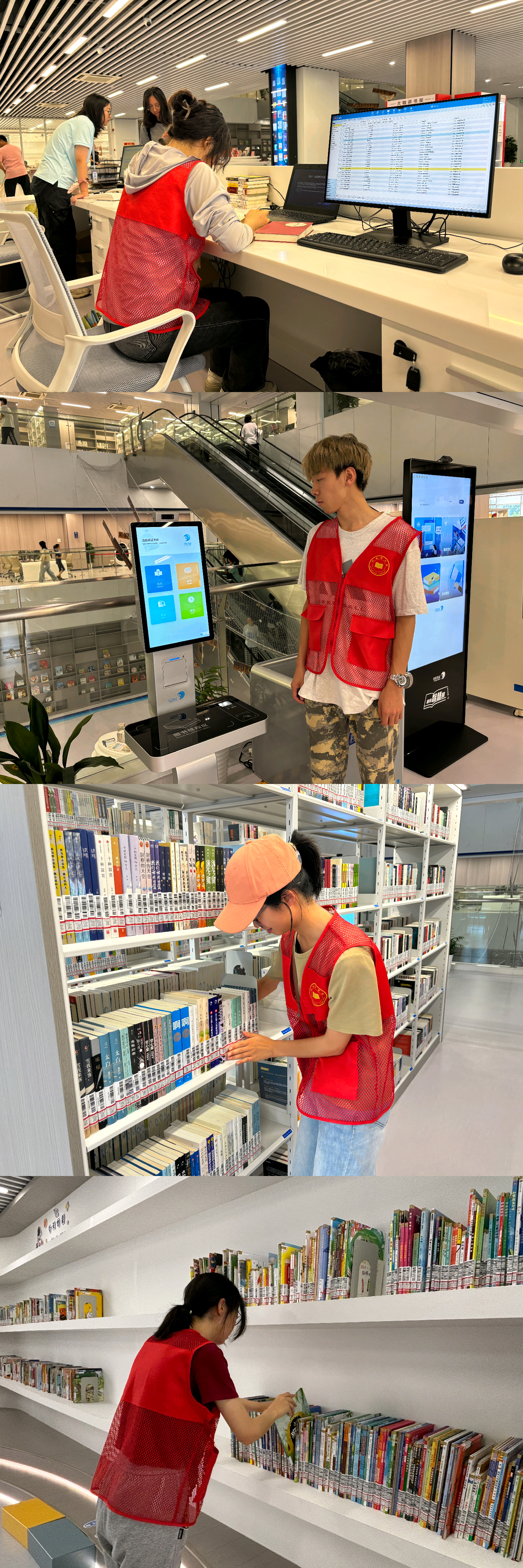 钱塘图书馆于6月28日正式开馆,地上建筑面积约5.45万平方米,共六层,藏书量可达24-45万册。当日上午9点,志愿者们准时抵达,迅速领取任务并有序投入工作。部分志愿者负责图书借还信息登记,确保流程准确无误;部分志愿者则负责引导读者,协助他们准确找到所需书籍,并熟练使用自助借还设备;其余志愿者则穿梭于书架间,整理被读者错放的书籍,确保书籍有序排列,便于读者查阅。