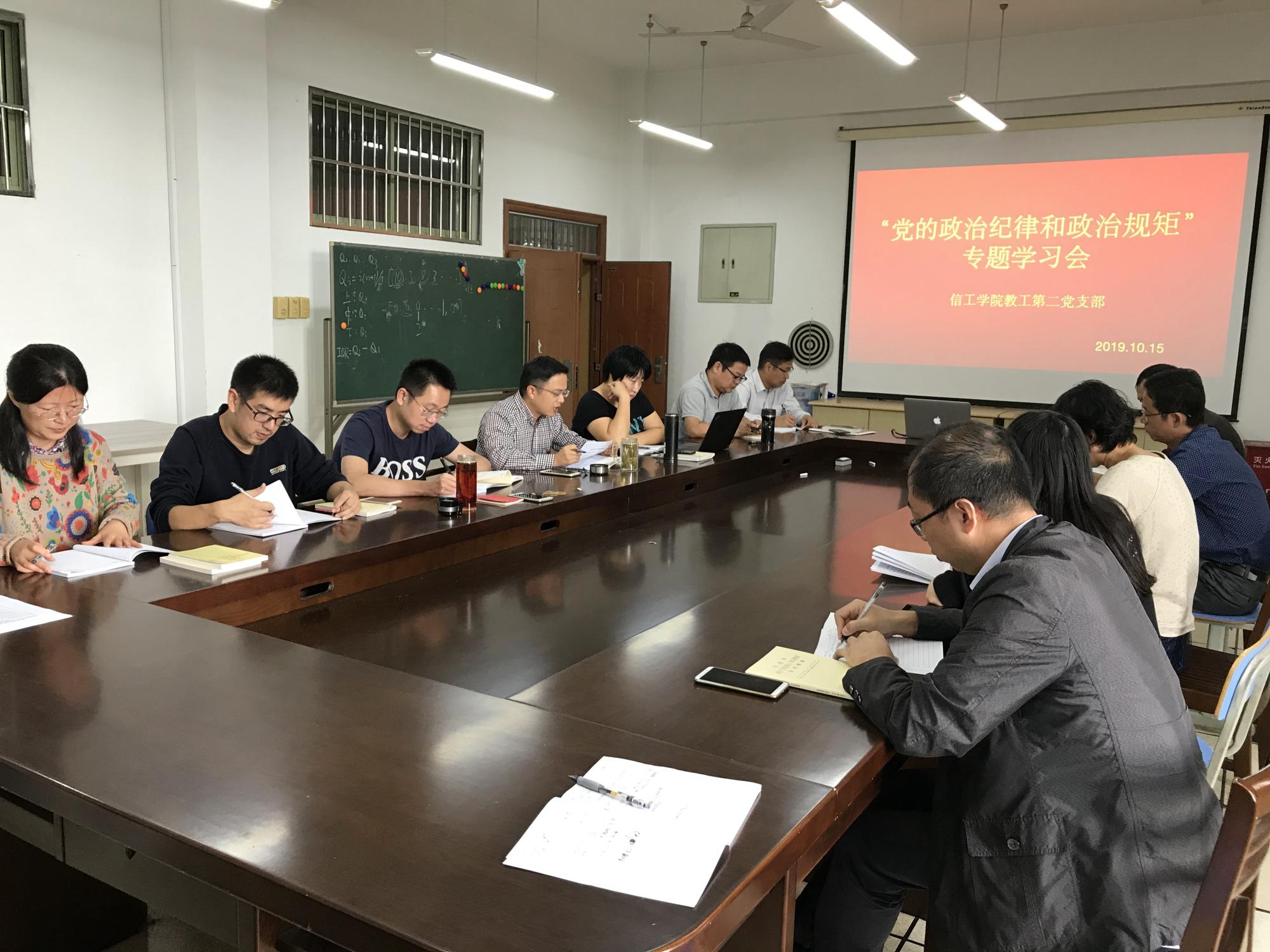 10月15日下午教工第二支部全体党员教师在9号楼305东召开了“教育报国守初心,立德树人育英才”的主题党日活动,以及“党的政治建设”和“党的政治纪律和政治规矩”两个专题学习会。