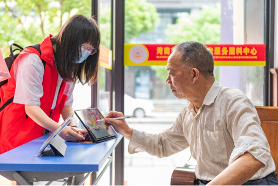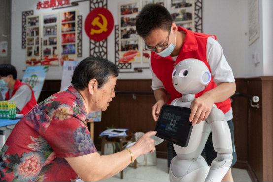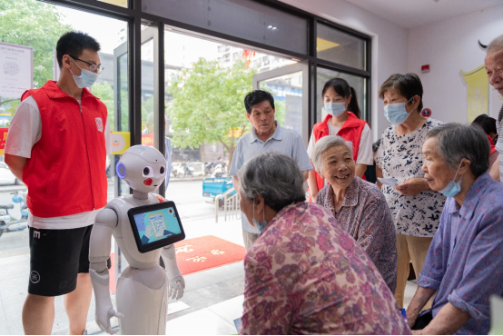 学生第四党支部党员走进湾南社区养老服务照料中心开展志愿服务活动。通过舞动机器人、唱响红歌、即刻出片、动态简笔画等带有科技色彩的游戏活动让社区老人搭上数字时代的便车,体验科技成果,享受智慧生活。