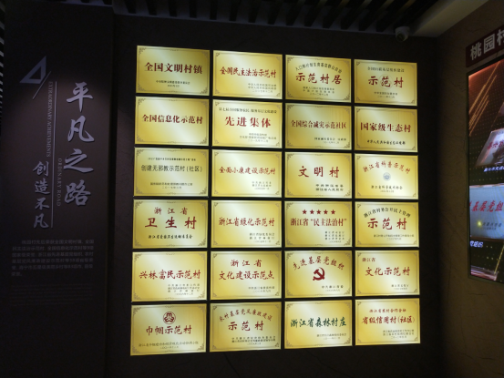 首先,由解说员带领参观了村史馆,介绍了村子从古至今的发展历史,村子中走出的名人,国家级省级领导人的考察,以及村子获得的各种荣誉等等。桃园村被授予了全国文明村、全国信息化示范村、国家级生态村等多个荣誉称号。并参观了村民的公共娱乐场所,包括了供老年人休闲娱乐的棋牌室、供儿童玩耍的场所、供村民锻炼的篮球场乒乓球馆、供村民读书学习的图书馆等等。