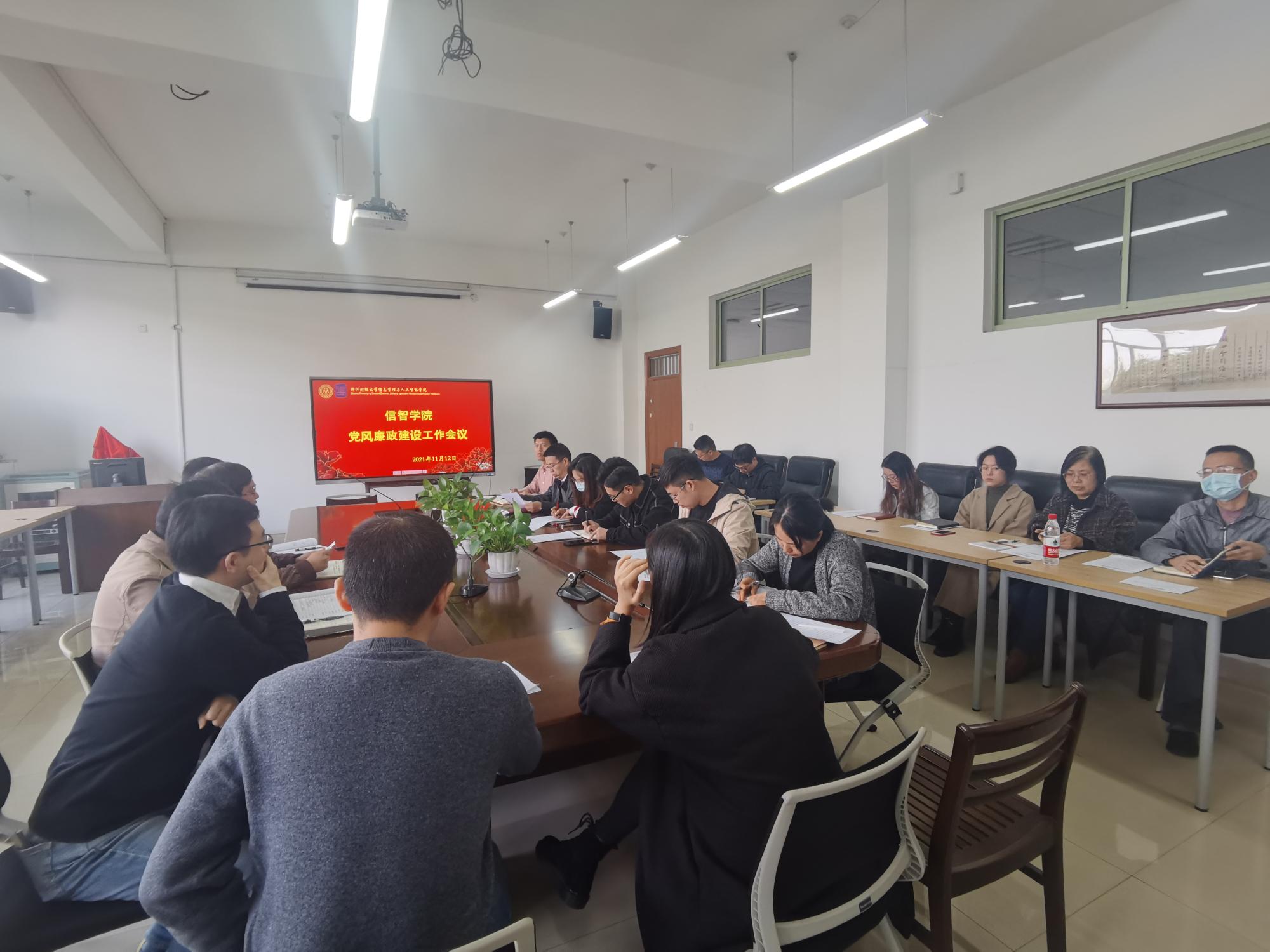 1112日,信息管理与人工智能学院召开党风廉政建设工作会,传达了学校党委、纪委工作会议精神,通报了学院清廉桌面系列活动的开展情况以及一清理两专项工作的阶段性成果,分析了当前存在的问题,明确了学院党风廉政建设工作的重点目标和具体工作。学院党政领导班子、纪委成员以及全体行政工作人员参加了会议,会议由党委书记徐奇伟主持。