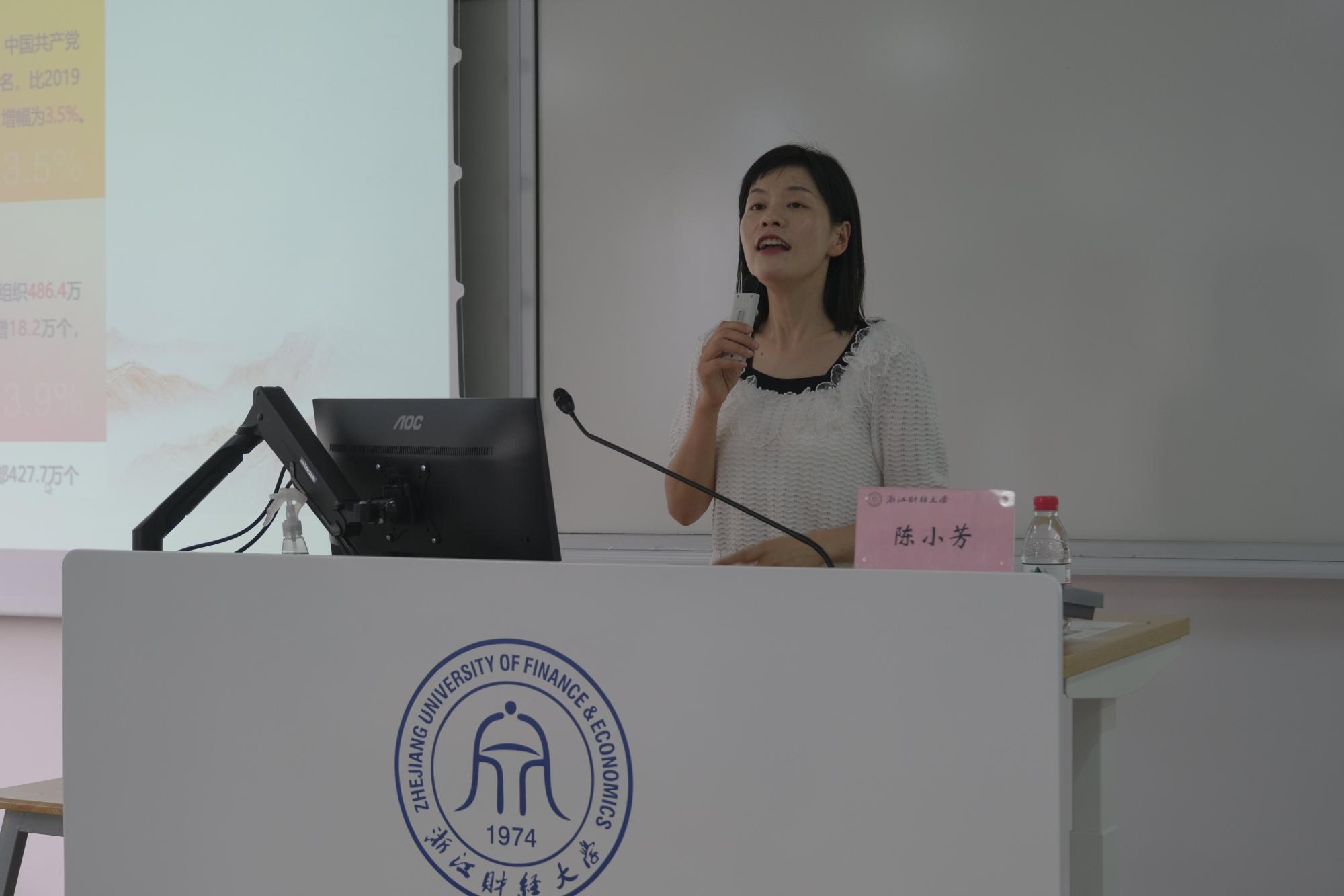 艺术学院党委副书记陈小芳老师以“青年党员的心理调适与情绪调节”题帮助大学生分析加入中国共产党应该要努力的方向。陈小芳老师指出当今大学生党员存在入党动机功利化、情感认同存在偏差、心理承受能力较差等特点,是社会环境对大学生党员的心理健康的影响、高校培育大学生党员心理健康的模式落后、大学生党员自身存在局限性等多重因素影响下形成的。陈小芳老师指出应该加强社会对大学生党员心理健康的指导作用、加强心理健康教育的师资队伍建设、加强大学生党员的自身心理素质、关心青年党员的心理健康问题。