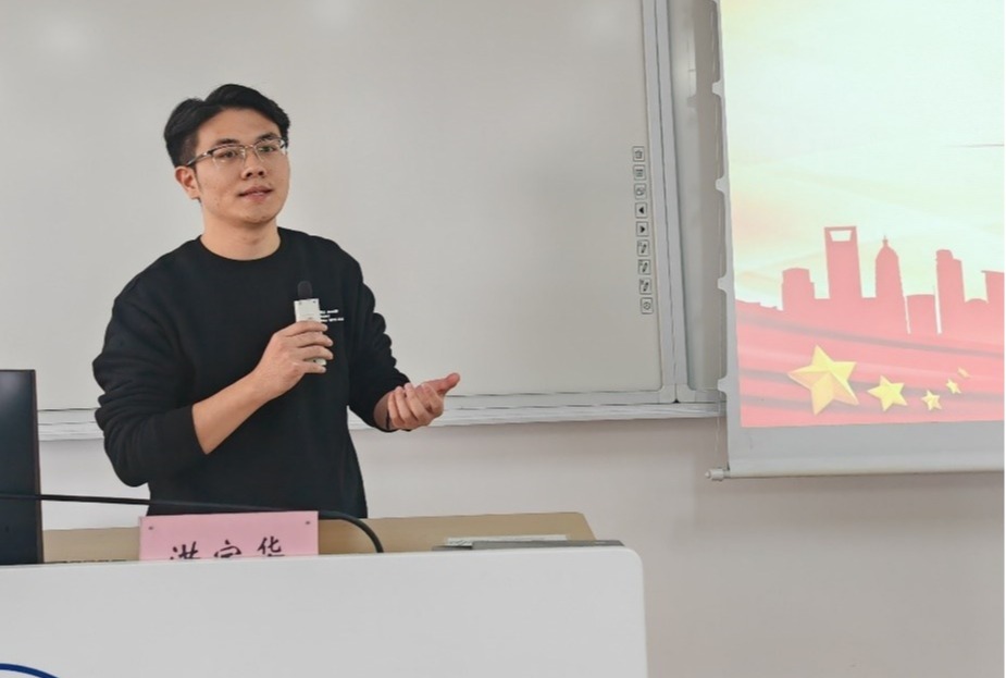 学生第三党支部书记洪宝华为“不忘初心,牢记使命,做新时代合格党员”为主题,为同学们介绍了共产党员的初心与使命,用视频展现红船精神内核,让同学们对党史有了更深入的了解,明确自己的担当的使命。
