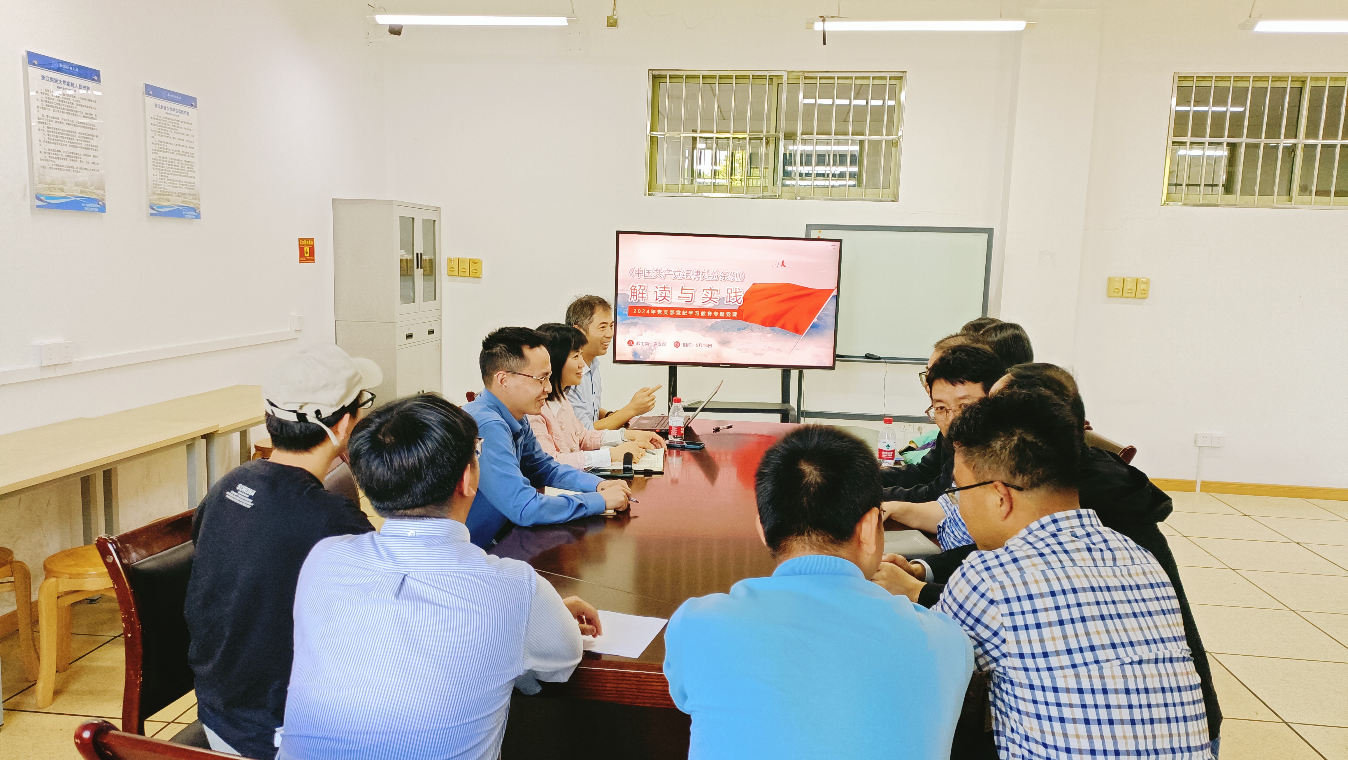 教工第一党支部在9103东开展了主题为“《中国共产党纪律处分条例》解读与实践”的党纪学习教育专题党课。