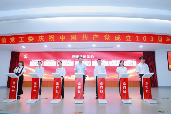 党委分别与中共杭州有才信息技术有限公司支部委员会、中共杭州芯控智能科技有限公司支部委员会、中共杭州目博科技有限公司支部委员会、中共杭州领猫信息科技有限公司支部委员会、中共杭州启飞智能科技有限公司支部委员会、中共浙江建木智能系统有限公司支部委员会等六家科技公司签署党建共建协议,通过校企党建融合,实现学科专业助力钱塘区企业产业高质量发展。