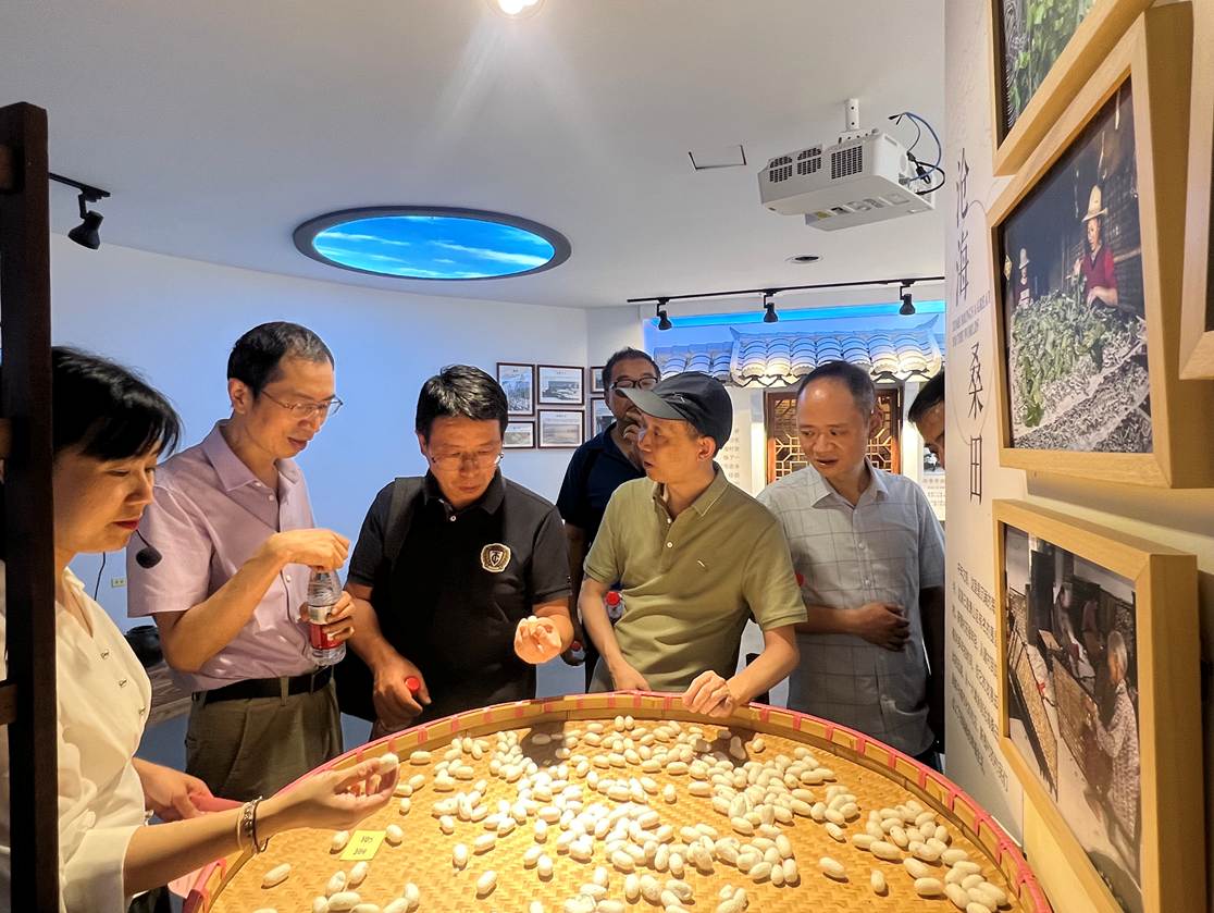 在支部书记朱凌的带领下,支部党员缓缓步入展馆,开启了一场生动的“田野课堂”。朱凌书记现场使用麦克风讲授党课,如同一位红色文旅导游。她结合“围涂造田”、“沧海桑田”等展区珍贵实物与数字沙盘娓娓道来,斑驳的独轮车、竹篓等“历史数据库”与展现50年地貌变迁的数字沙盘形成时空对话。