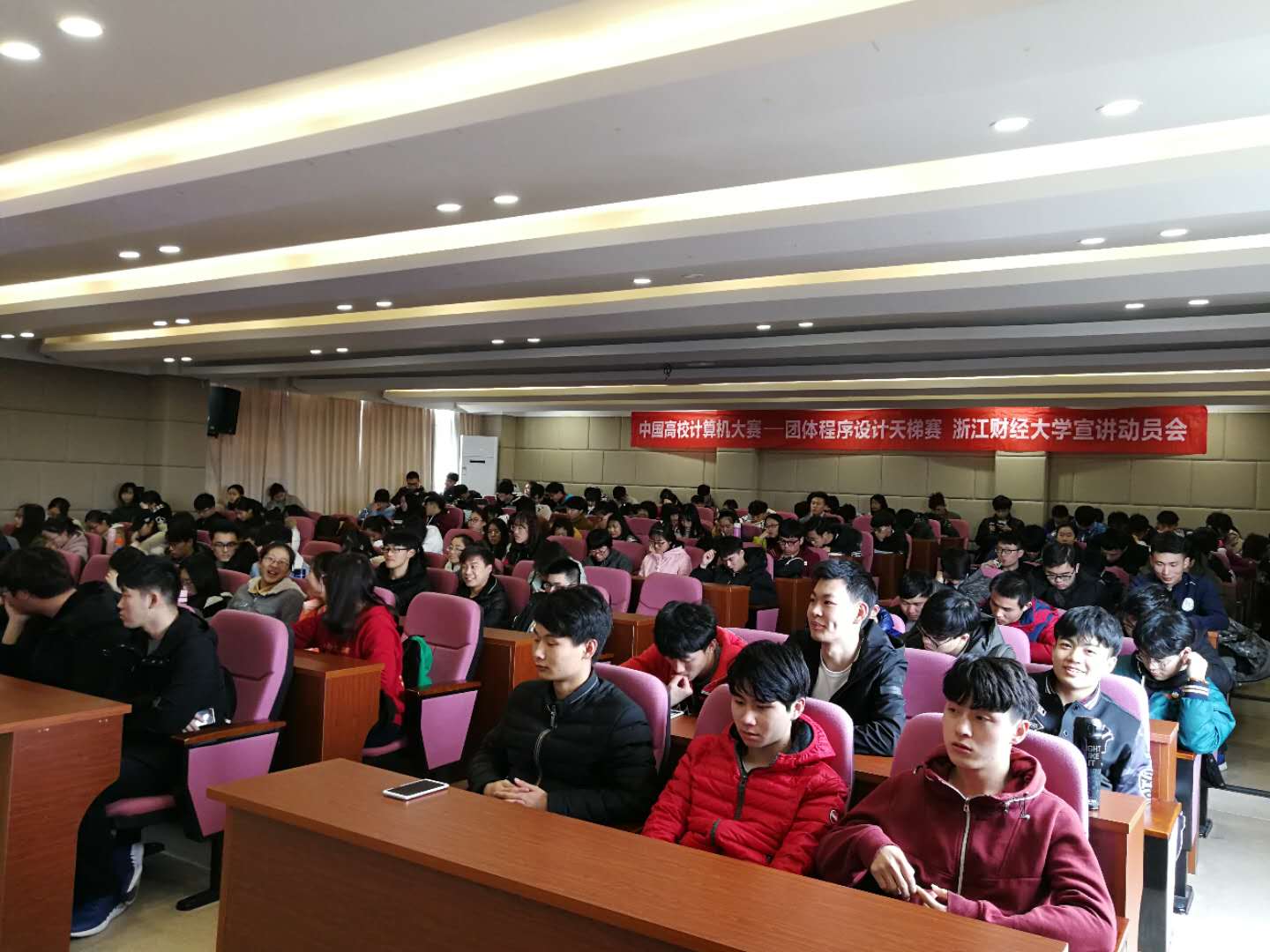 2018中国高校计算机大赛——团体程序设计天梯赛宣讲动员大会在信工学院9302报告厅举行。近200名同学参加了本次宣讲动员大会,分别来自信工学院信息管理与信息系统、计算机、软件工程、电子商务四个专业,和数据科学学院信息与计算科学专业,现场十分踊跃,座无虚席。