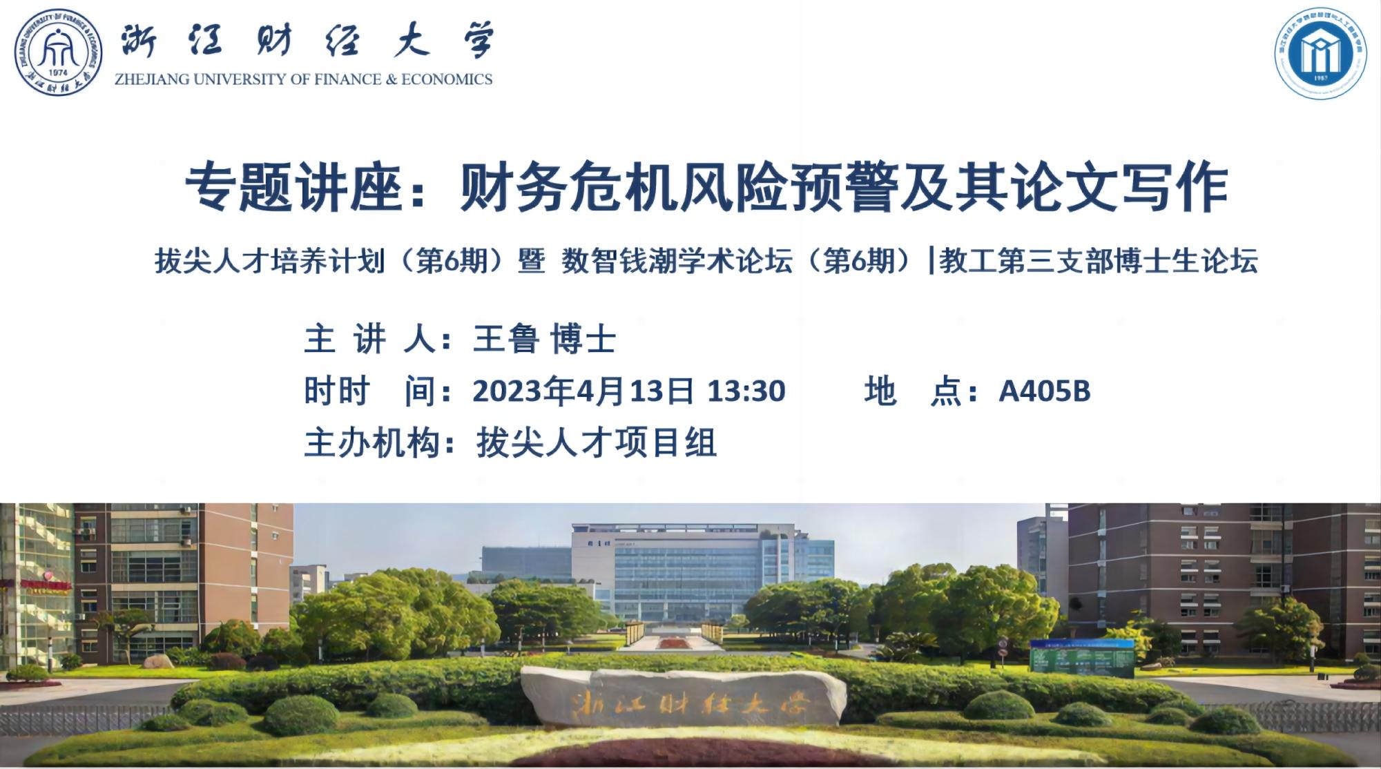 2023年4月13日13点30分,2022年度拔尖人才培养计划(第6期)在A楼405B教室成功举办。王鲁博士以“财务危机风险预警及其论文写作”为主题,帮助同学们了解了企业财务危机风险预警的相关算法及模型。