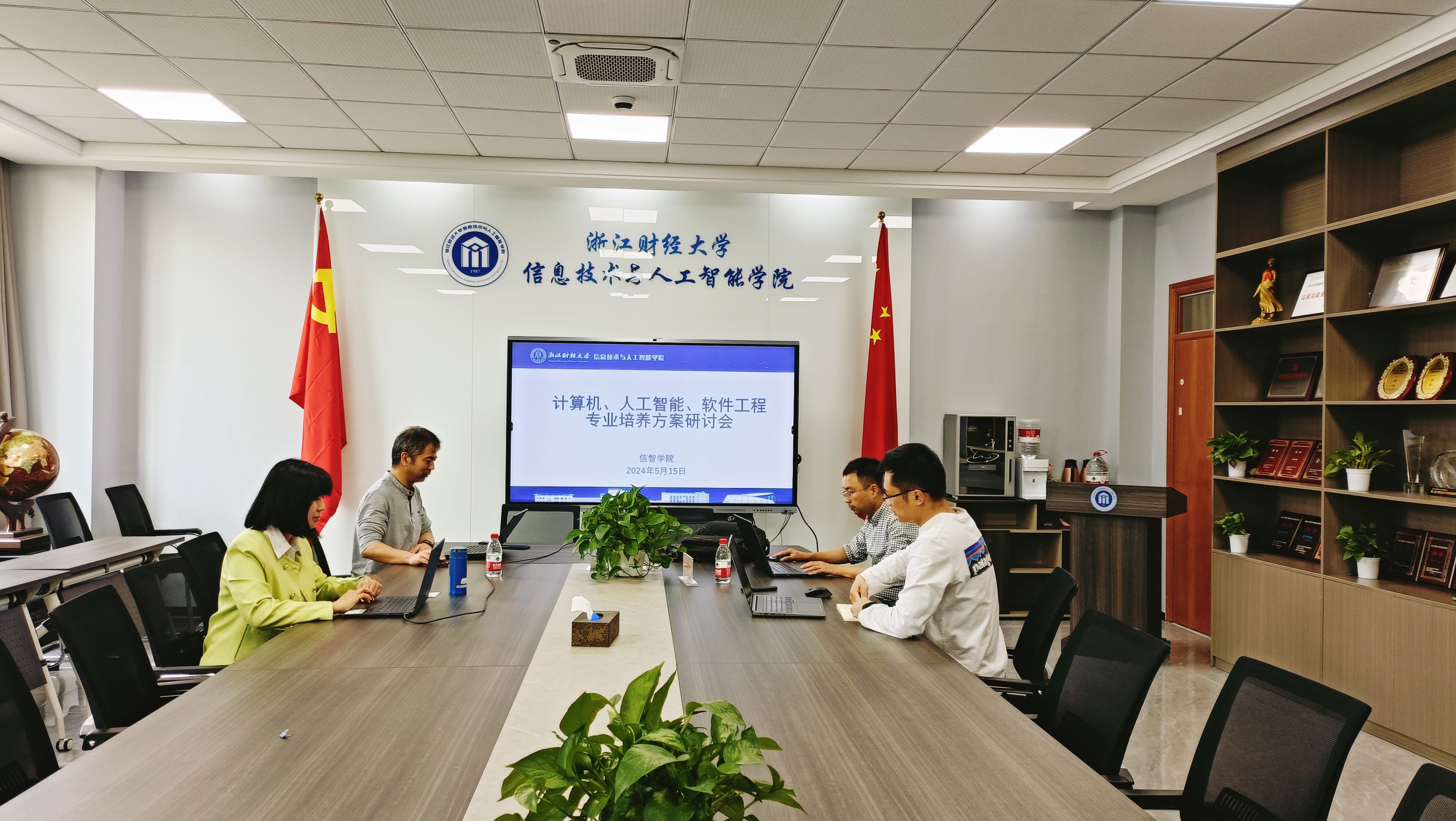 于9-404会议室召开程认证讨论会暨2024级本科培养方案研讨会。教学院长朱凌、院长助理兼计算机系系主任陈明晶、人工智能系系主任陈琰宏、软件工程系系主任涂乐、工程认证骨干教师林玮玮、教学秘书孙山参与了本次研讨会,会议由教学院长朱凌主持。