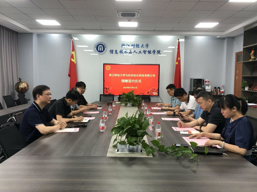 与杭州钛比科技有限公司举行捐赠签约仪式,杭州钛比科技有限公司总经理潘骏,产品总监陈俊丰,智联网教育销售总监陆震,智联网教育销售经理汤正华,成人视频