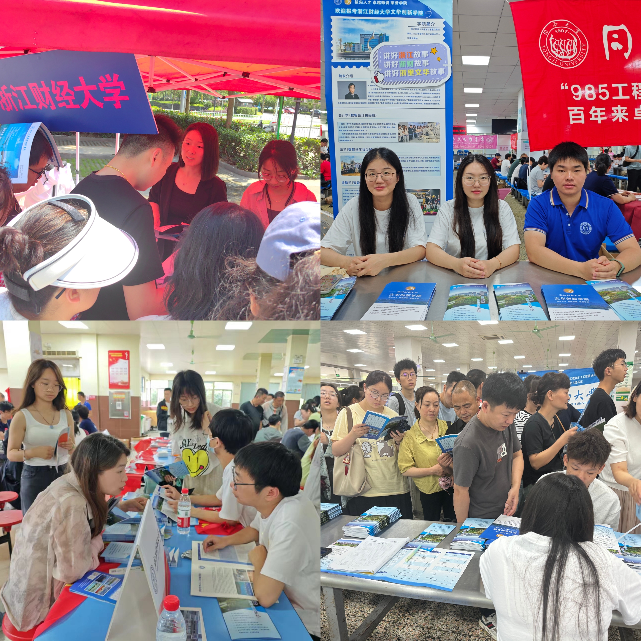 梅雨时节,细雨未晴,各地的招生咨询活动依旧如火如荼地开展,现场人潮涌动、氛围热烈。无数考生与家长热情洋溢地聚集在咨询摊位前,热切地咨询关于报考我校的相关信息,学院的教师们都以满腔的热情和专业的素养,积极展示着我校的办学优势、招生计划、专业培养、就业前景等,细致入微地回答考生与家长们的疑问。他们为考生们的高考志愿填报和学业规划提供了精准且实用的建议,充分展示了我校始终坚持以学生为中心,致力于培养“浙财金生”的办学理念。