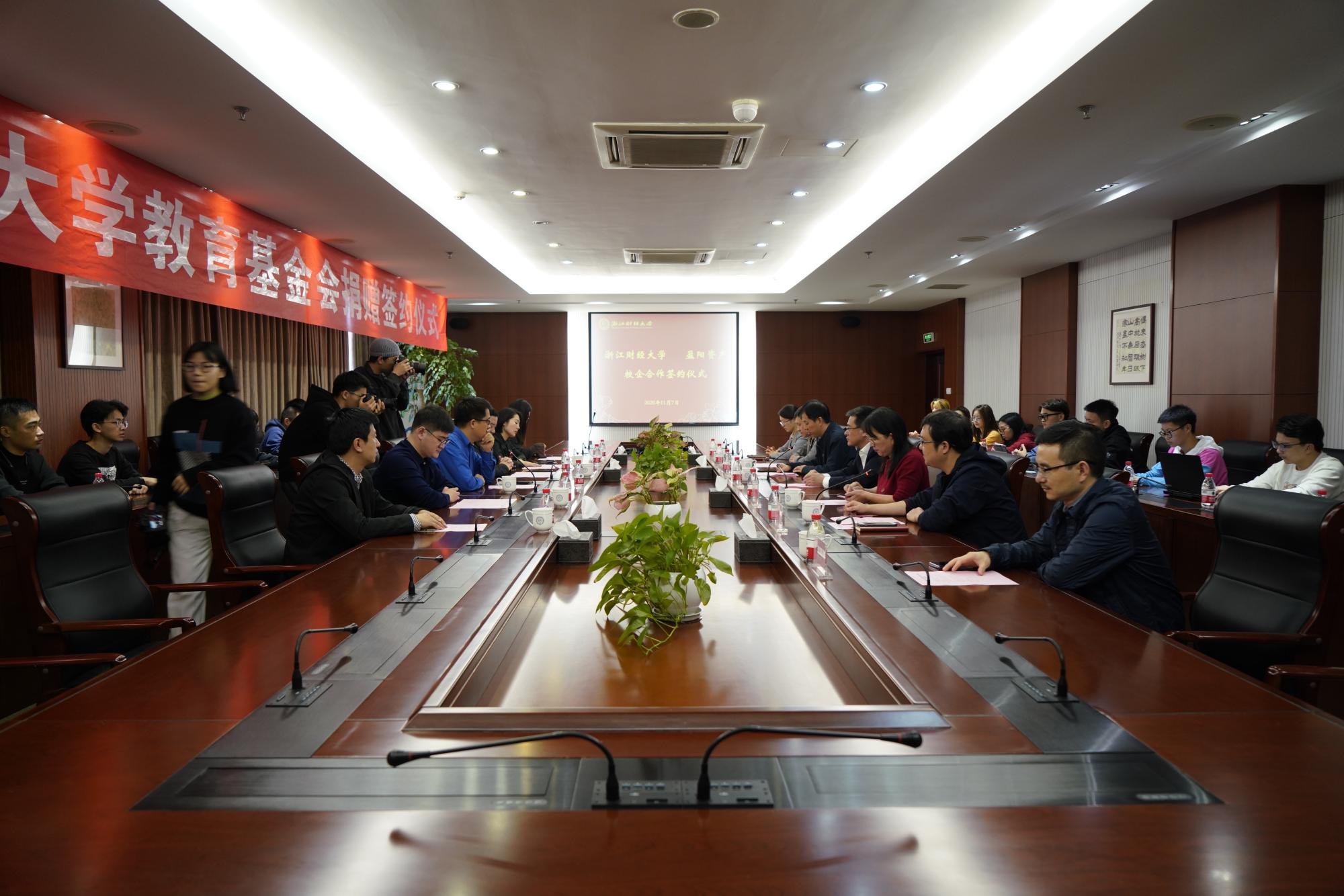 11月7日下午,成人视频 与浙江盈阳资产管理股份有限公司校企合作项目签约仪式在下沙校区举行。盈阳资产创始人楼栋校友、总经理孔繁岗校友、技术总监赵海滨成人视频 副校长徐晓东以及校友办、计财处、成人视频 负责人和师生代表等40余人出席签约仪式。