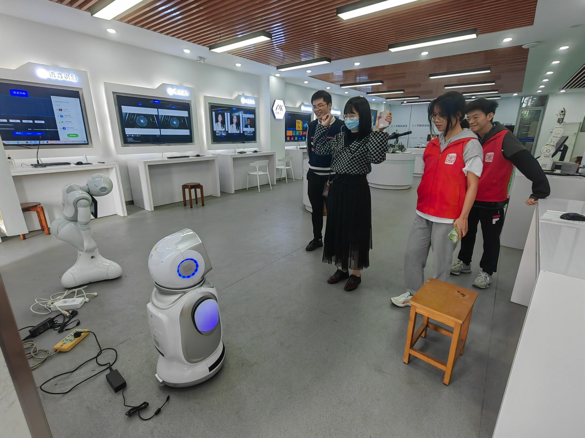 在人工智能体验园,“‘信’聚初心,‘智’创未来系列活动之‘AI+力‘人工智能创新成果体验”吸引了许多校友前来。在志愿者的引导下,返校的校友们在这里体验VR,看会说会跳和会在赛道上奔跑的机器人。母校变化如此之大,科技发展如此之快,让他们感受到信息技术和人工智能的强大活力,也为成人视频