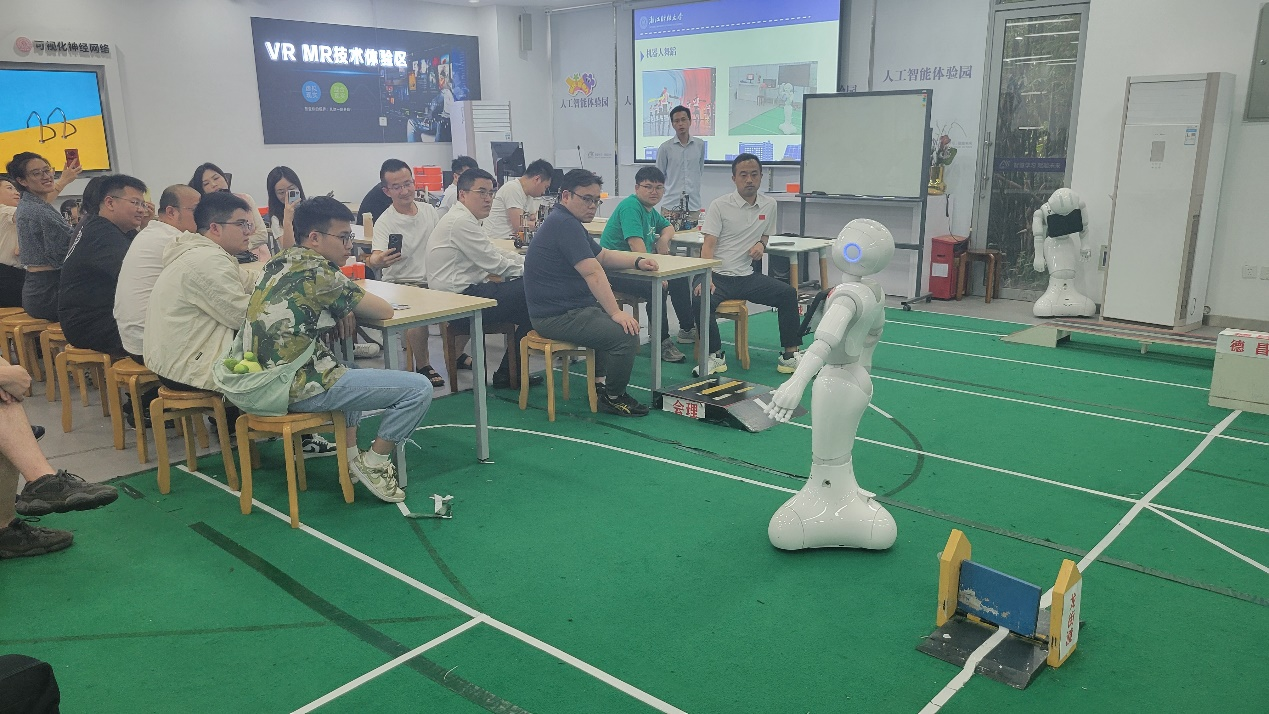 人工智能体验园,相关老师分享金融与科技、机器人舞蹈、机器人重走长征路,展示了AIGC生成的流程、方法与案例。