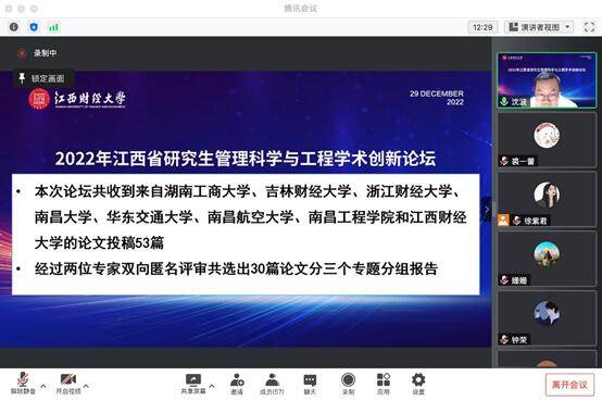 成人视频 研究生参加“2022年江西省管理科学与工程学术创新论坛”并获一等奖
