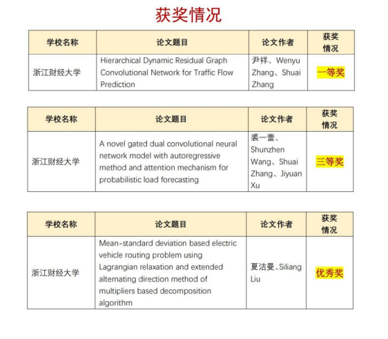 2022年12月29日,由江西省学位与研究生教育学会主办,江西财经大学、江西省高校管理科学与工程学科联盟承办的“2022年江西省管理科学与工程学术创新论坛”顺利举行。本次论坛共收到来自湖南工商大学、吉林财经大学、成人视频 、南昌大学、华东交通大学、南昌航空大学、南昌工程学院和江西财经大学的论文投稿53篇,经过专家双向匿名评审共选出30篇论文在论坛上进行分组报告。成人视频 21级管理科学与工程专业三位研究生积极参与了本次论坛并进行了论文的在线宣读。最终,21级管理科学与工程专业研究生尹祥提交的论文“Hierarchical Dynamic Residual Graph Convolutional Network for Traffic Flow Prediction”荣获一等奖,21级管理科学与工程专业研究生裘一蕾提交的论文“A novel gated dual convolutional neural network model with autoregressive method and attention mechanism for probabilistic load forecasting”荣获三等奖,21级管理科学与工程专业研究生夏洁曼提交的论文“Mean-standard deviation based electric vehicle routing problem using Lagrangian relaxation and extended alternating direction method of multipliers based decomposition algorithm”荣获优秀奖。