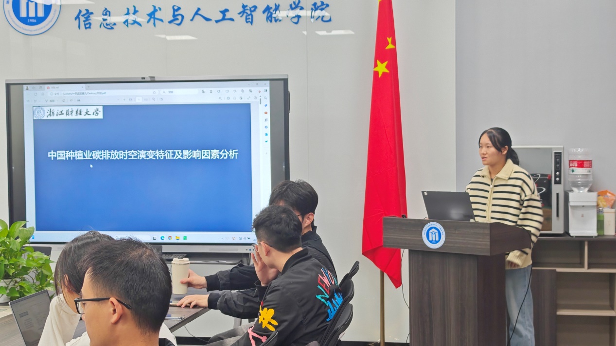 李罗南、刘芸、李一鸣、谭瑞斌以及杨镇宇同学,分别就“lmpact of viewer-streamer-content congruence on users’ behavioraintention in virtual streaming: the moderating effect of role- playing”、“中国种植业碳排放时空演变特征及影响因素分析”、“双层网络中多游戏激励与耦合的联合效应”等议题进行了深入的探讨与分享。他们的研究不仅在学术上有着重要意义,也为现实世界的技术应用提供了新的思路与启示。还有对用三维框架发现新兴话题的微弱信号的精彩介绍,以及关于人工蜂群算法应用于在制造系统的研究成果,让参会者们对于前沿技术的发展有了更深入的了解和认识。