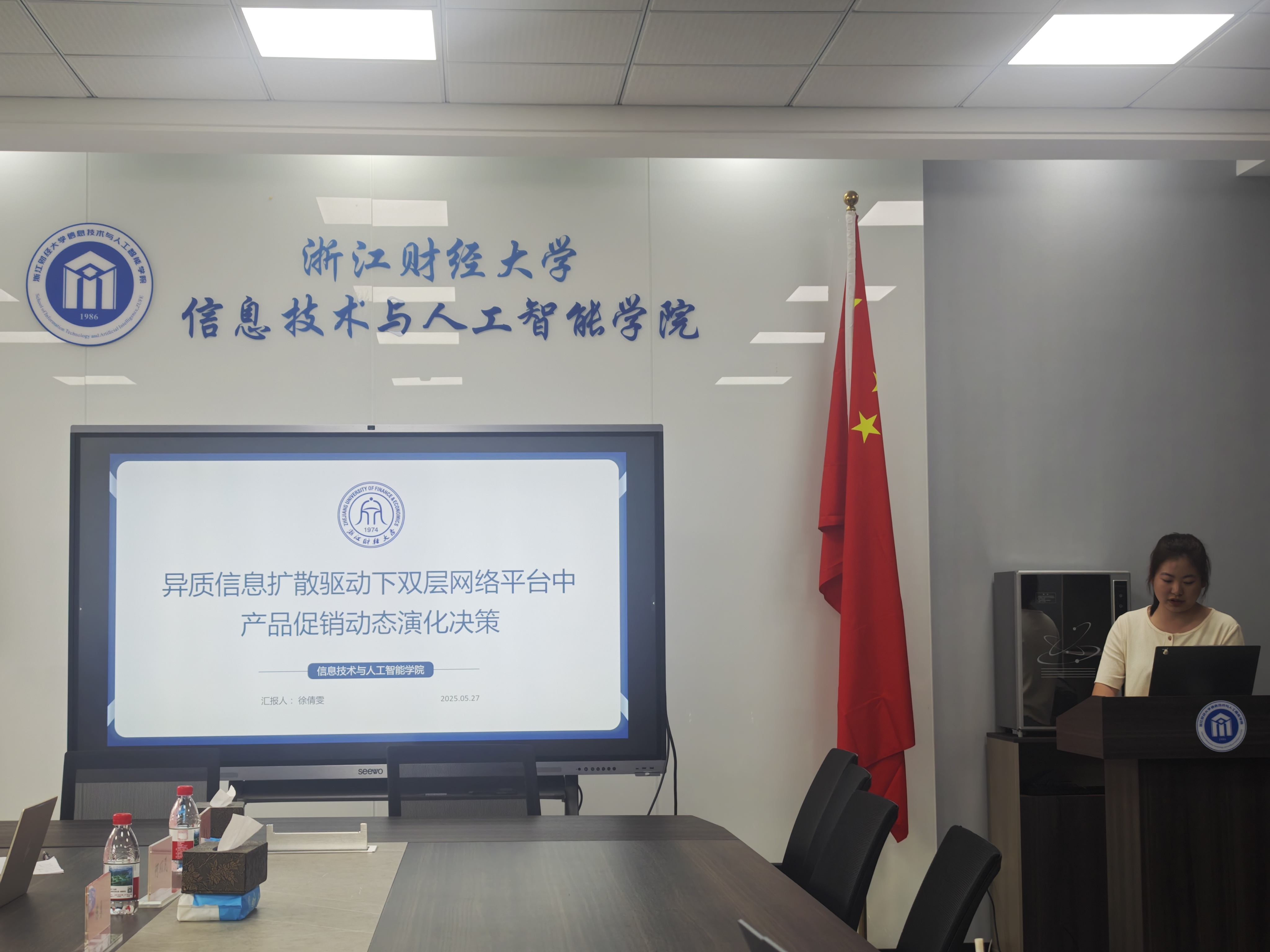 徐倩雯同学介绍了《异质信息扩散驱动下双层网络平台中产品促销动态演化决策》一文,在跨平台营销策略建模方面提供了新颖的分析框架。
