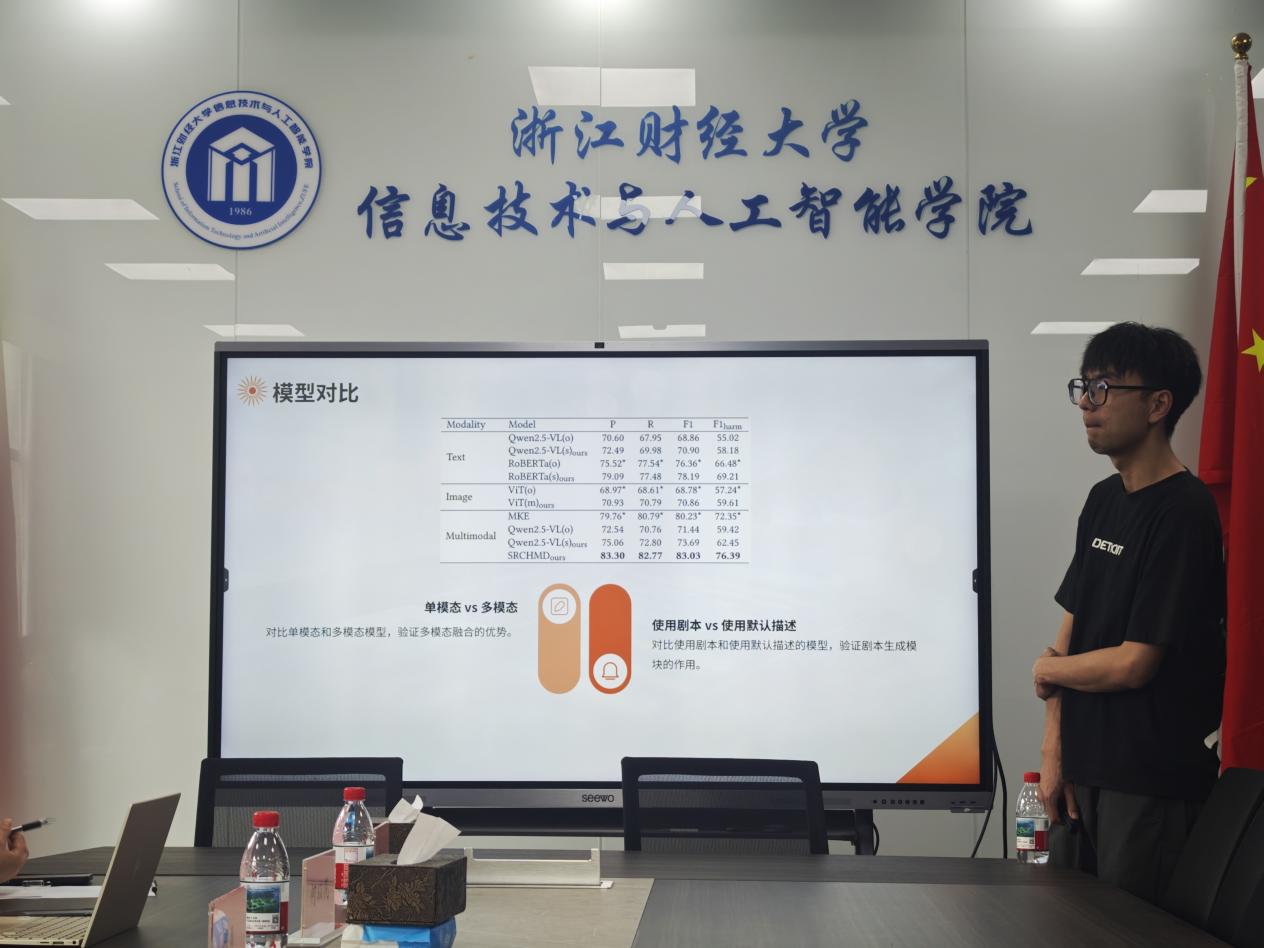首先,李晨同学带来了题为《多模态大型语言模型是才华横溢的编剧:用于检测中文有害表情包的剧本推理》的分享。