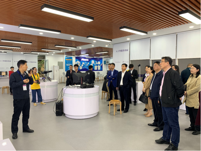 2019年11月16日上午,教育部高等学校财经学类教学指导委员会李俊生副主任委员、中国注册税务师协会张树学副会长,秘书长一行在我校李永友副校长的陪同下来人工智能体验园参观交流。副院长张帅教授介绍了在教育部“AI+智慧学习”共建人工智能学院、财政部中央财政专项资助“人工智能AI+应用实验室”的支持下,我校在国内率先建成人工智能体验园,面向全校学生开展人工智能普及教育;针对人工智能在各行各业的飞速发展与应用,张帅教授介绍了我校在“人工智能+经管”复合型人才培养方面的举措;并介绍了语音识别系统、人脸融合系统、图像风格迁移系统、自动驾驶模拟系统等。
