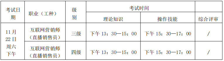 考试时间为2025年11月22日(周六)下午,请考生根据申报的职业(工种)和等级参加考试,具体安排如下: